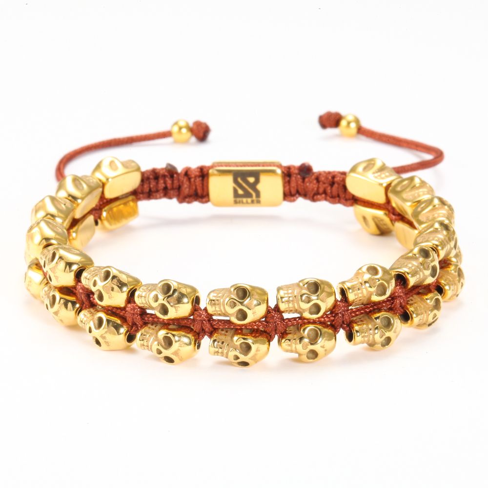 Legion marks our signature thread slithered on 32 count 18k gold plated skulls. Pull string closure. #sillermade